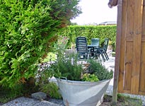 Sie verfügen über eine große Sonnenterasse mit Grillkamin. Gartenmöbel und Sonnenliegen stehen für Sie bereit. Die Häuser haben Markisen oder einen großen Sonnenschirm. Ein Strandkorb lädt zum relaxen eine. Einige Häuser haben auch einen Kamin im Innenbereich.